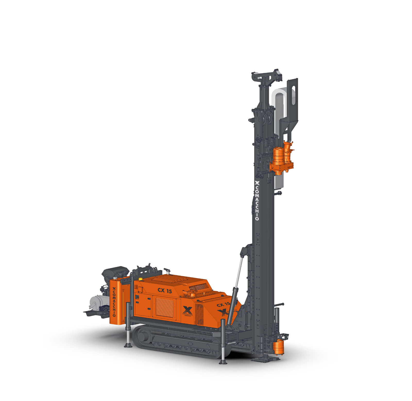 The Comacchio X rigs combine advanced engineering with rugged structural design to optimize core recovery, drilling accuracy, operational safety, and overall productivity. At the heart of each rig is a robust feed and rotation system, designed to deliver high feed and pullback forces while supporting high-speed rotary heads. This ensures precise control of weight on bit and stable penetration rates, minimizing core breakage, reducing hole deviation, and maximizing sample quality. The Comacchio diamond drill rigs support deep drilling capacities, accommodating core barrel lengths up to 6 m, enabling longer drilling runs and faster progress in both vertical and inclined drilling applications. Optional on-board rod handling systems eliminate manual rod handling during tripping operations, significantly reducing operator fatigue and safety risks while improving cycle times and overall operational efficiency.